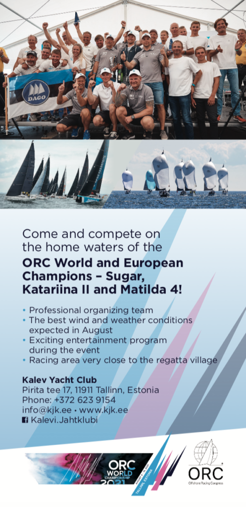 This event will be a great opportunity to test the waters of the 2021 ORC Worlds to be held on the same venue in Tallinn on August 6-14, 2021. The website of the Worlds 2021 is under construction yet and will be launched soon.