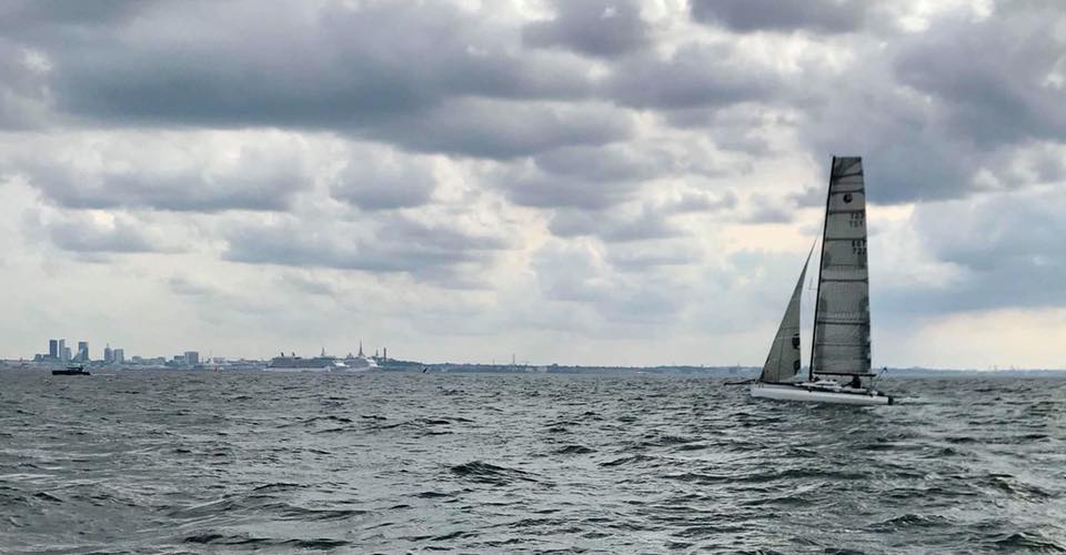 The first multihull to finish – Cremefraes (cre:mfre:sh) EST727 of Heikki Jürilo at 18.16.